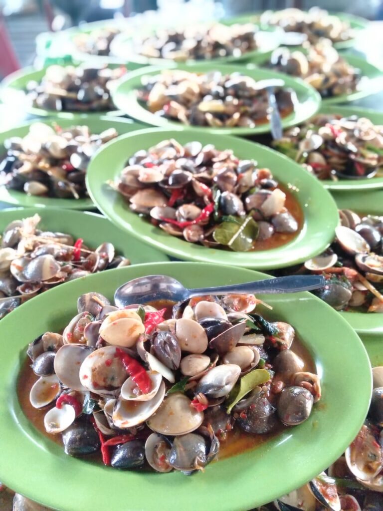 Kerang kepah dimasak dengan saus tauco khas yang gurih dan sedikit pedas, menciptakan cita rasa oriental yang kaya dan menggugah selera.