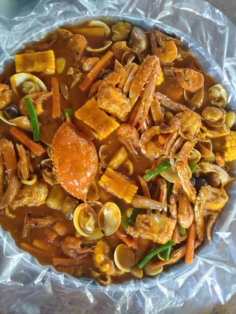 Paduan aneka seafood segar seperti udang, cumi, kepiting, dan kerang dengan bumbu pedas gurih yang menggugah selera. Disajikan dengan gaya “seafood bucket” yang seru dan berlimpah.